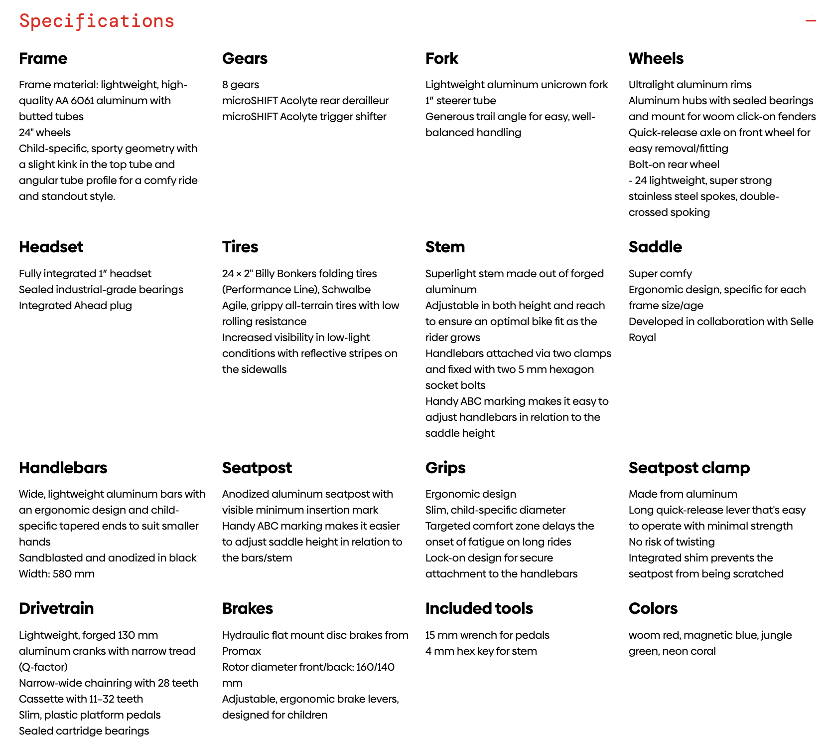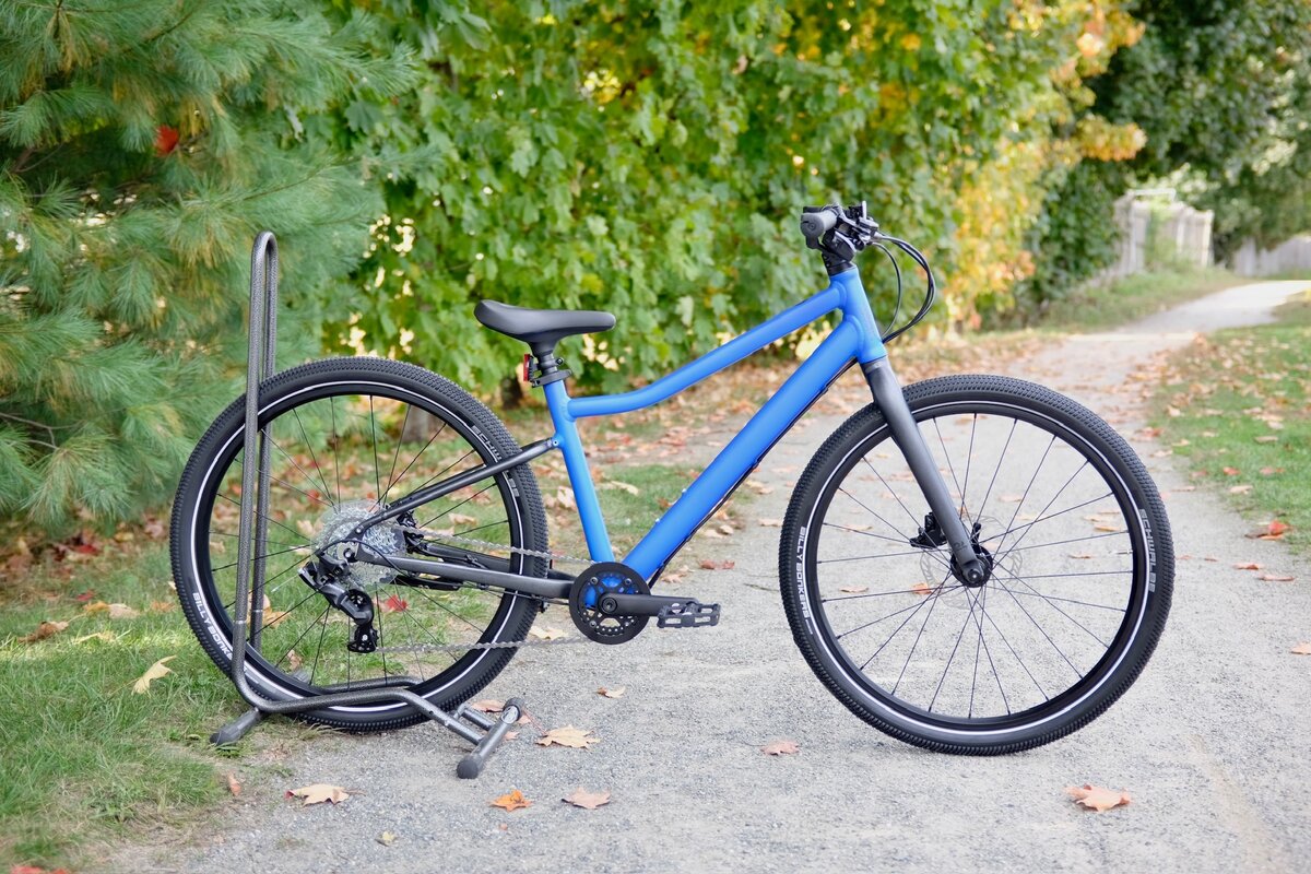 The superlight, all-rounder 24" children's bike for riders aged seven and up with disc brakes, 8 gears and all-terrain tires.
